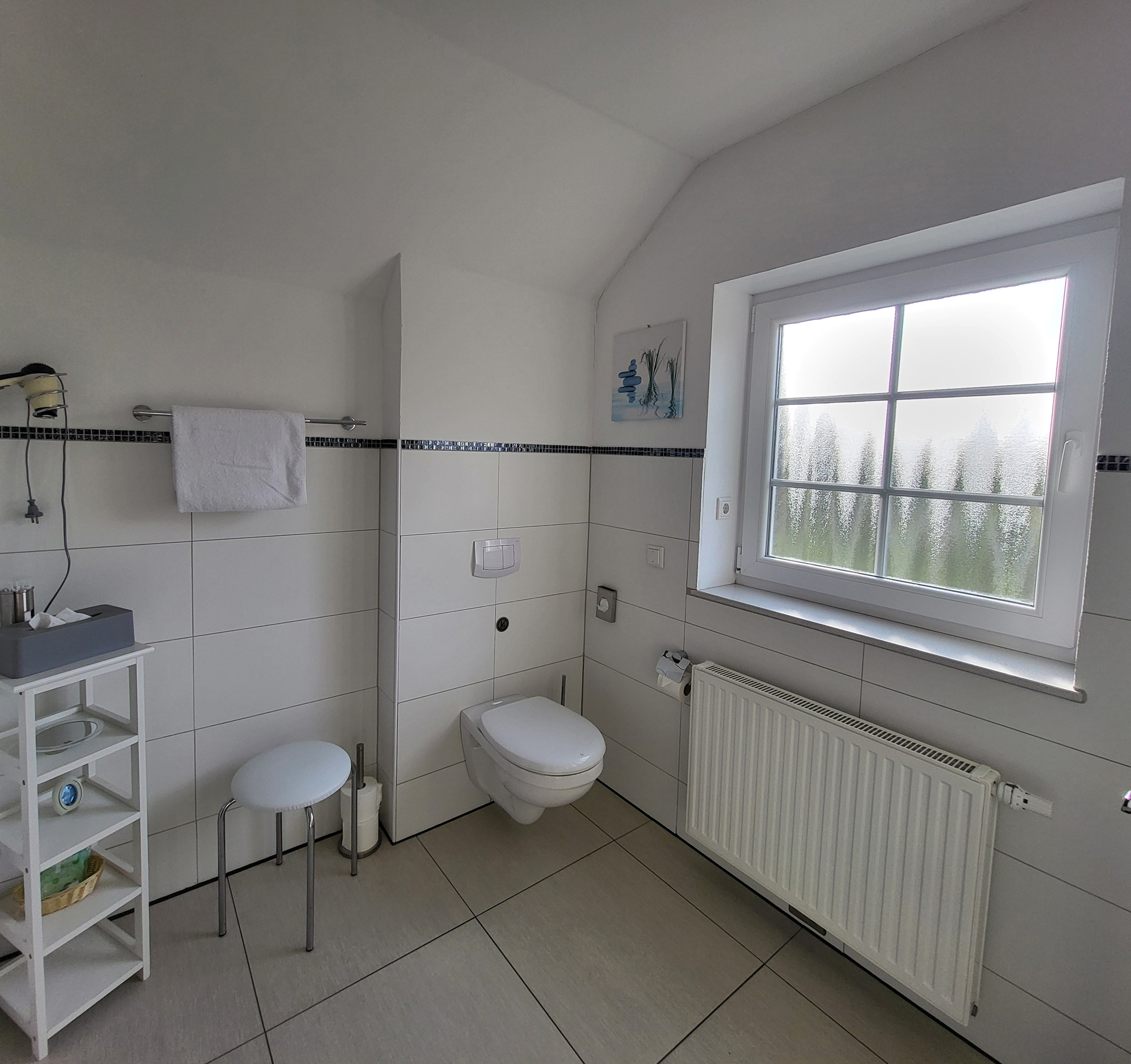 Unser großes Ferienhaus verfügt über 2 Schlafzimmer (je eines im Ober- und Erdgeschos) mit je einem großen Doppelbett. Jede Etage hat zudem ihr eigenes Bad mit Dusche. Im Erdgeschoss läd außerdem ein gemütliches Wohnzimmer mit Flachbild-TV, Sofa und Stühlen zum Verweilen ein.